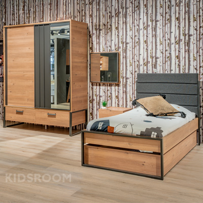 Legend tienerkamer een combinatie van hout met metaal in de kleuren wit of antraciet.