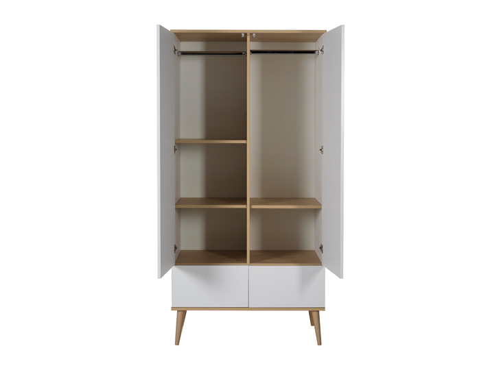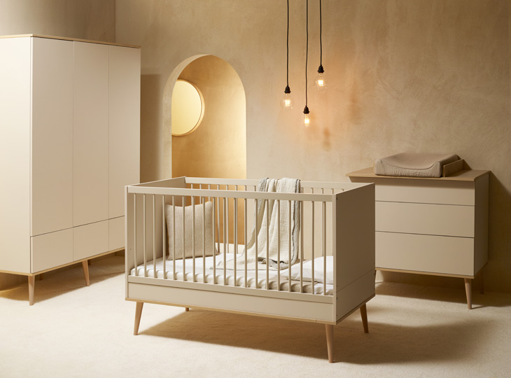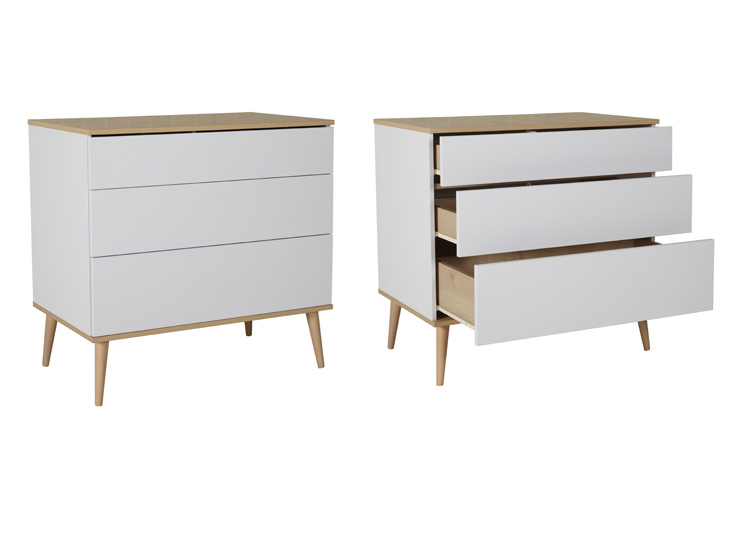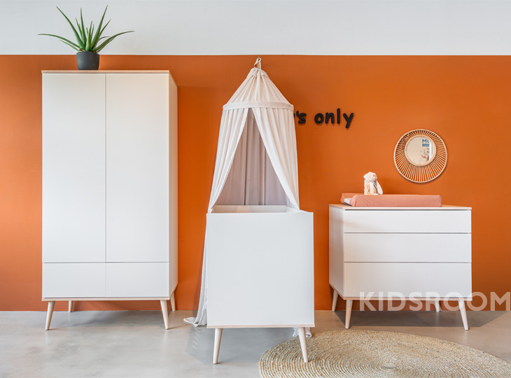De Flow White&Oak babykamer is onderdeel van de mooie serie Flow van Quax bestaande uit een Ledikant, een commode en een 2-Deurskast. De combinatie van strakke vormgeving, wit met naturel kleuren en schuine pootjes geven deze babykamer van Quax een mooie, subtiele jaren ’70 uitstraling. Shop de complete kinderkamerlijn Flow White&Oak en creëer een veilige en stijlvolle slaapomgeving voor je kindje.