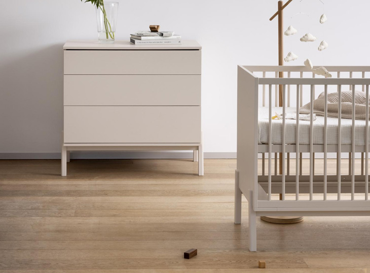 In de Ashi collectie van Quax is ook een bladvergroter beschikbaar zodat je meer ruimte hebt tijdens het verschonen en je baby recht voor je ligt. Dit maakt het een stuk gemakkelijker. Deze is los bij te bestellen net als een passend matrasje. Babykamer Ashi is ook verkrijgbaar in de kleur Chestnut, Cream en Honey Ash.