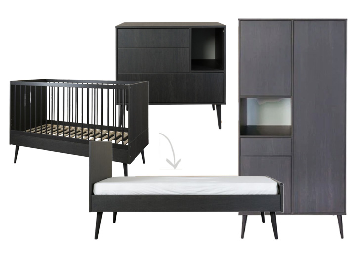 Quax | Cocoon | Eboni | Meegroeikamer | Meegroeibed 70x140 | Commode | 2-Deurskast