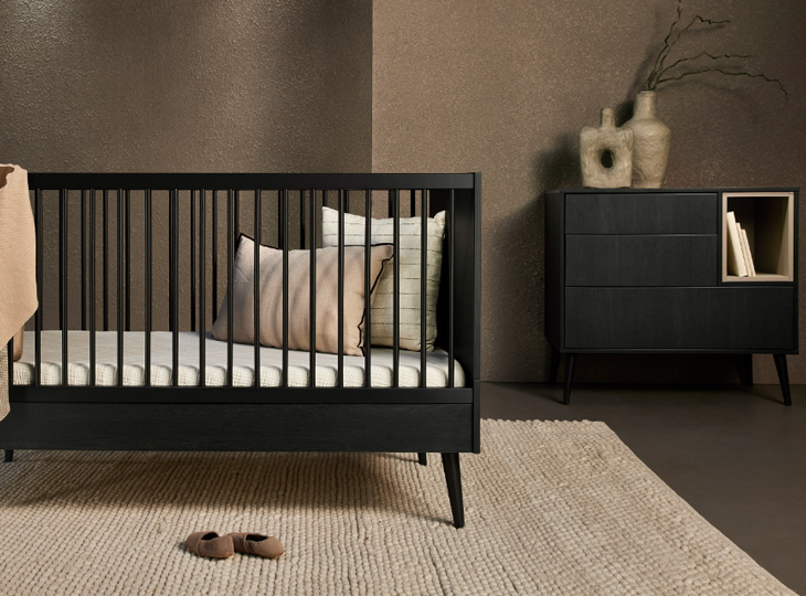De Quax Cocoon 2-delige meegroeikamer in de kleur Eboni is een aanwinst en elk huishouden. De set bestaat uit een ledikant (70×140) en een commode. Zo kan je baby slapen, kun je verschonen en heb je genoeg opbergruimte. Het ledikant is later om te bouwen naar een peuterbedje. Mocht je meer ruimte nodig hebben kun je ook de 3-delige set gaan. Hier zit nog een kledingkast bij.