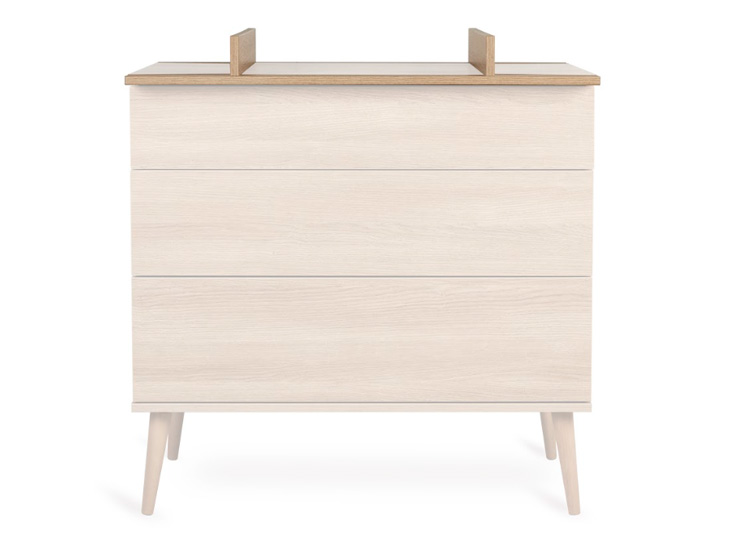 De Quax Flow 3-delige babykamer in de kleur Honey Ash combineert minimalistisch design met praktische functionaliteit, waardoor het de perfecte keuze is voor een serene en stijlvolle kinderkamer.. De egale lak combineert met hout fineer staat zeer luxe. Zo kan je baby slapen, kun je verschonen en heb je meer dan genoeg opbergruimte.