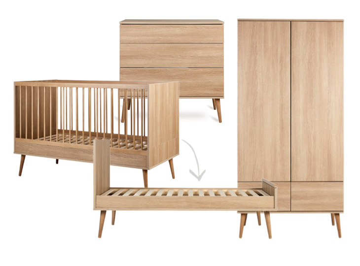 De Quax Flow 3-delige meegroeikamer in de kleur Honey Ash combineert minimalistisch design met praktische functionaliteit, waardoor het de perfecte keuze is voor een serene en stijlvolle kinderkamer.. De egale lak combineert met hout fineer staat zeer luxe. De 3-Delige meegroeikamer bestaat uit: