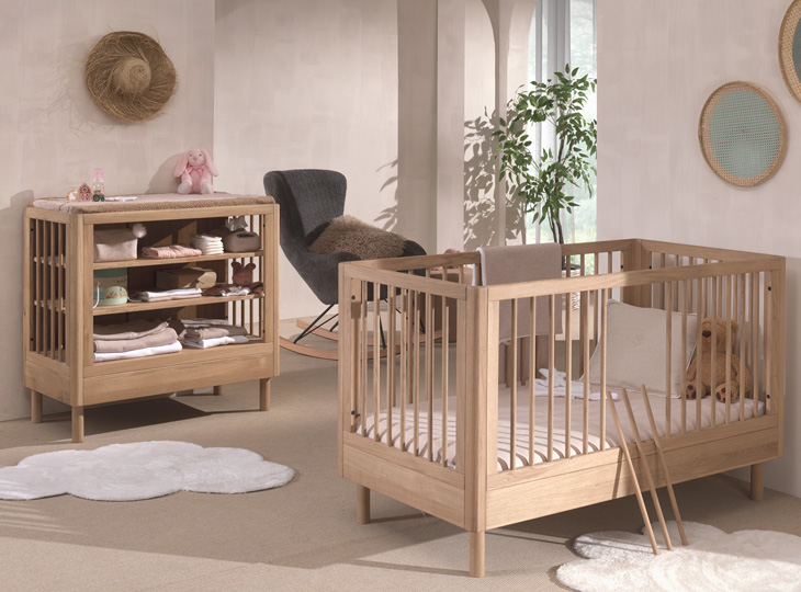 2-Delige babykamer Forrest massief eiken van Vipack. De collectie Forrest is ontworpen met oog voor detail en straalt kwaliteit uit op elk niveau. De meubelen zijn gemaakt van hoogwaardig massief eikenhout. De commode beschikt over twee open legplanken die voldoende opbergruimte bieden voor essentiële items en heerlijk wegdromen doe je in het ledikantje (70x140) dat met je meegroeit.