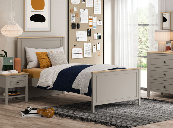 Het Sento Ledikant 90x200 is ontworpen met oog voor detail en esthetiek. De combinatie van grijze tinten met natuurlijke eiken accenten zorgt voor een warme en uitnodigende sfeer in de slaapkamer. Dit bed is niet alleen een functioneel meubelstuk, maar ook een prachtige toevoeging aan de inrichting van de kamer.