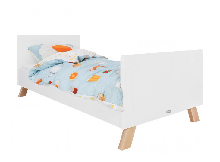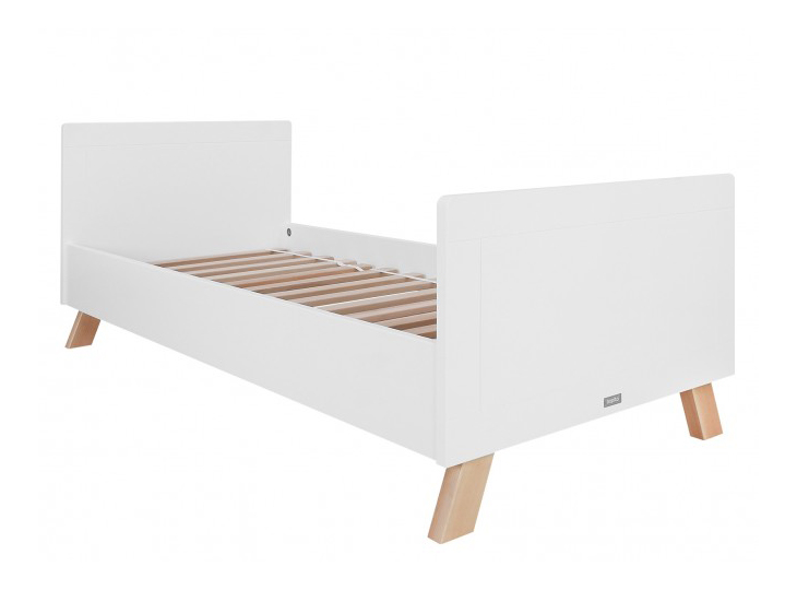 Kinderbed Lisa van Bopita is uitgevoerd in een sprekende combinatie van dekkend wit gelakt MDF en transparant gelakt beuken, wordt geleverd met nachtkastje. Het hoofd- en voeteneind zijn van dik, solide MDF en voorzien van subtiele groeven. Het bed staat op speels, schuingeplaatste beuken poten. In het midden van het bed zorgen twee ondersteuningslatten voor extra stevigheid. De gebruikte lak is op waterbasis en daardoor veilig voor kinderen en milieuvriendelijk. Het hout is afkomstig uit Europese bossen. Het bed wordt geleverd met een stevige lattenbodem.