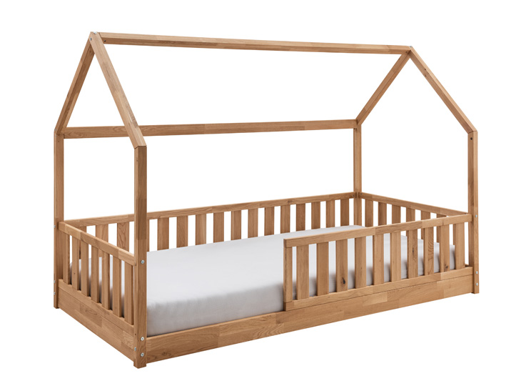 Gemaakt van massief eikenhout en voorzien van een stevige lattenbodem, biedt het bed optimale ondersteuning en comfort. De uitvalbescherming en instapopening zijn zowel links als rechts te monteren, zodat het bed moeiteloos in iedere kinderkamer past.