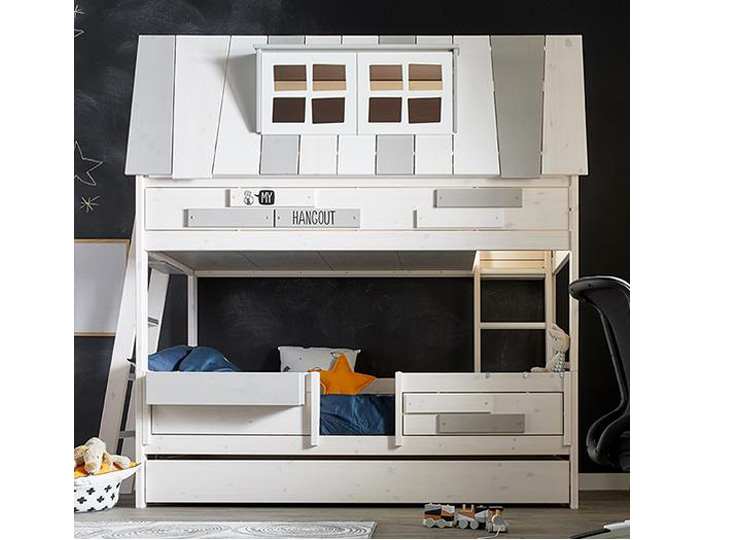 Het superleuke Hangout huisjesbed kan je naar je eigen wens aanpassen! Lifetime maakt bedden met heel veel doorbouwmogelijkheden. Uitgevoerd in massief grenen whitewash hout.