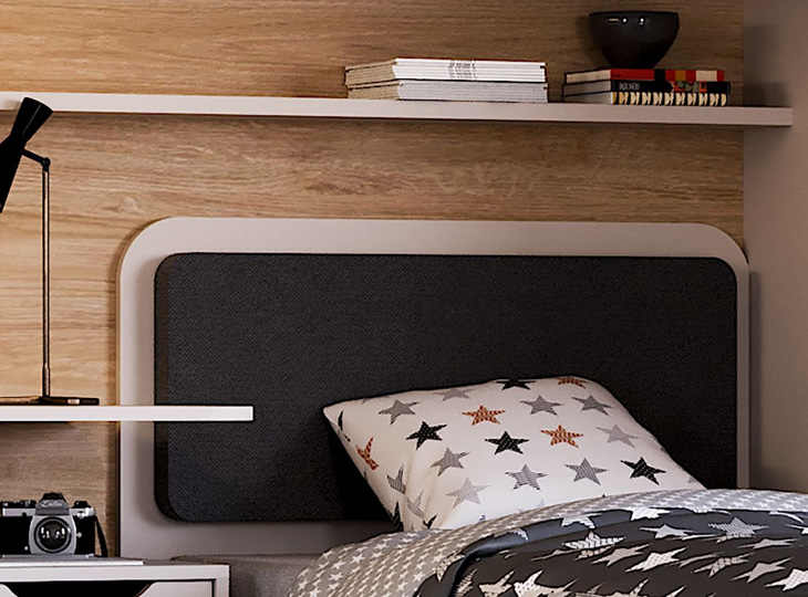 Dit hoekstapelbed is in één woord GEWELDIG! Wat een unieke kleurencombinatie. Helemaal van deze tijd, maar tegelijkertijd zo tijdloos. Het past bij heel veel stijlen en is een eyecatcher voor iedere kamer. Het stapelbed is gemaakt van hoogwaardig kwaliteitsspaanplaat gecoat met melamine. Kortom een superstevig stapelbed. Dit geweldige stoere stapelbed beschikt over een zeer handige trap. Door de schuine wand ernaast kun je je ook makkelijk vasthouden bij het naar boven lopen. Het bed onder beschikt over een gaaf gestoffeerd hoofdbord en boven het bed vind je over de gehele breedte een ruime legplank. Handig om je kleine kostbaarheden op te bewaren. En dan nog even een moderne gadget...of eigenlijk gadgets. Er zijn twee USB-poorten op de achterwand en het bed beschikt over stoere ledverlichting onder het bed. Helemaal van nu dus. De trap kan zowel links als rechts gemonteerd worden.