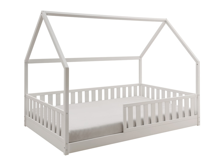 Het Fenna bodembed (ook wel vloerbed of Montessori-bed) is de ideale keuze voor peuters en jonge kinderen. Dankzij de balustrades slaapt je kleintje veilig zonder uit bed te rollen, terwijl de lage instap het mogelijk maakt om zelfstandig in en uit bed te stappen.