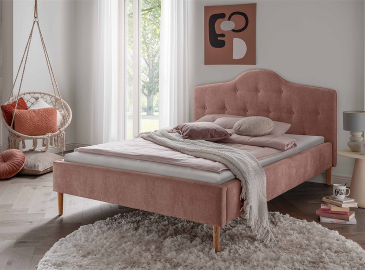 - Op de foto word Lisa bed getoond met stof Vienna - Old Rose 1920