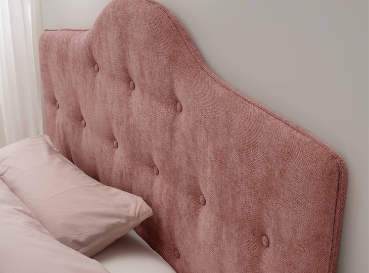 Het is een stijlvol en gestoffeerd ledikant met sierlijk gecapitonneerd hoofdbord. De speelse ronde vormen van het hoofdbord geven iedere slaapkamer direct een gezellige uitstraling.