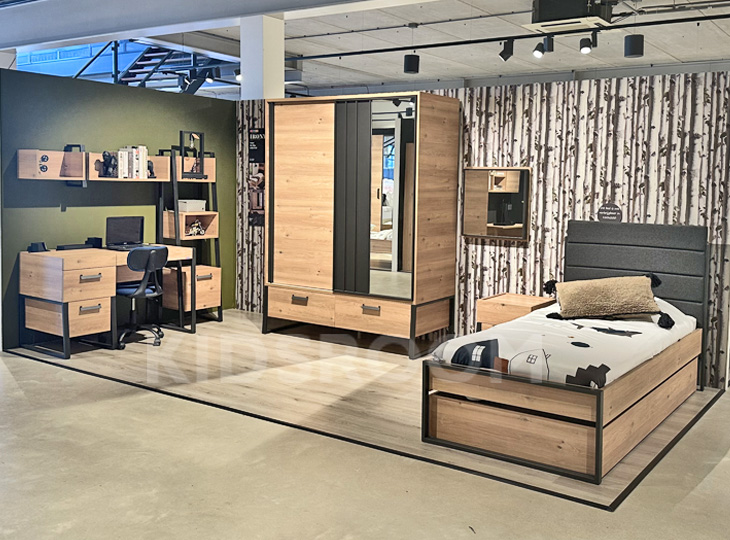 complete kinderkamer met diverse kasten en bureaus beschikbaar.