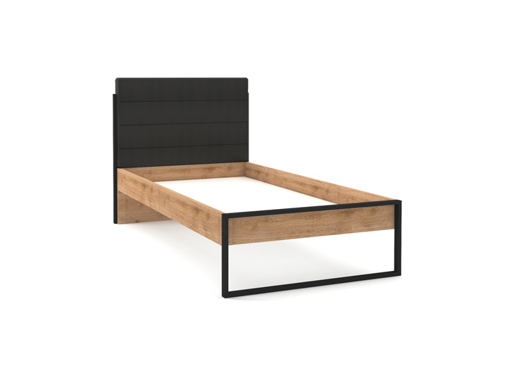 Stoer Irony 1-persoonsbed met recht hoofdbord in een industriële look. Het stoere materiaalgebruik en de eigentijdse vormen geven dit Irony 1-persoonsbed een moderne uitstraling.