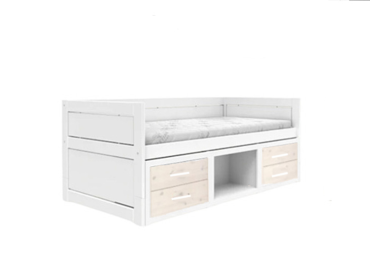 Met het Lifetime kajuitbed tover je je slaapkamer om tot een heus leesparadijs. Dit comfortabele bed in een witte kleur past perfect bij elke kamerinrichting, en dankzij de ingebouwde boekenkast met een open vak en 2 whitewash ladesets creëer je zeeën van opbergruimte voor al je favoriete boeken en andere items. Zo stimuleer je de leesvaardigheid van je kind en houd je de kamer netjes opgeruimd. Decoreer met wat leuke kussens en dekens om het geheel compleet te maken. Slaapkamers worden ineens een stuk leuker!