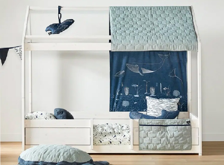 Alle 4 in 1 ombouw sets zijn bij de prijs inbegrepen. Verder is het bed voorzien van een stijlvol design en perfect te combineren met andere producten van Lifetime Kidsrooms. Met de House Bed Cover Ocean Life voor je House Bed met uitvalbeveiliging constructie en creëer je een gezellige slaapervaring. In het gordijn is een speelmeeuw verwerkt. Je kunt de schildpadpoef of de gevormde kussens toevoegen om dieper in het Ocean Life-thema te duiken.