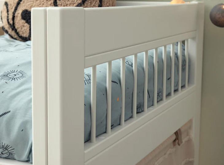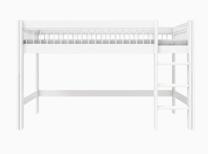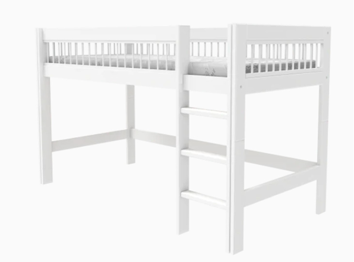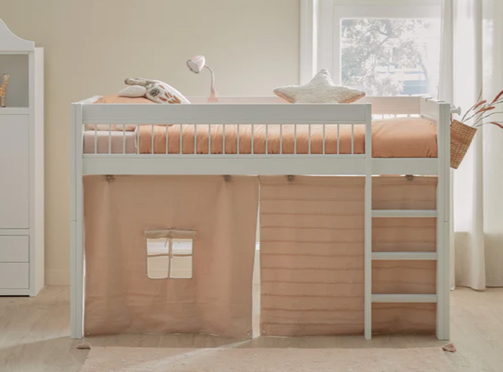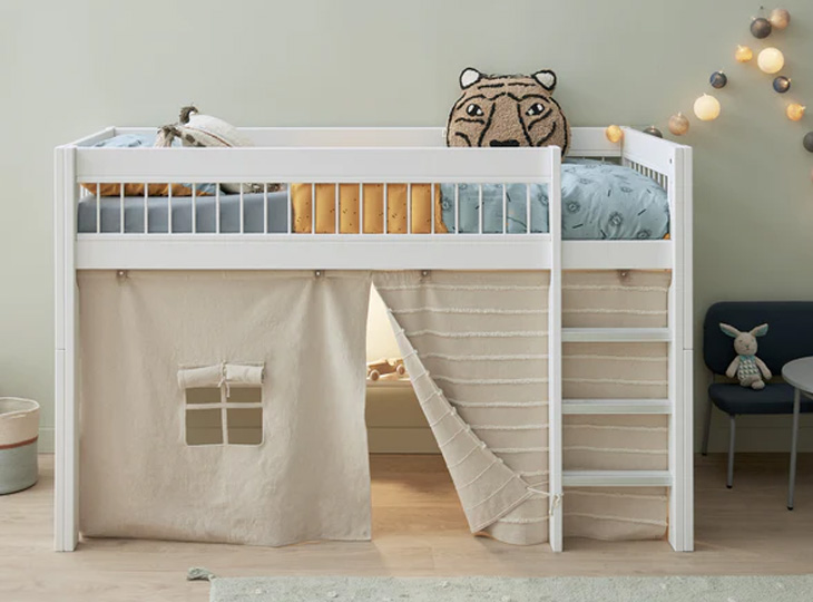 Creëer de perfecte sfeer en knusse setting met het halfhoge bed, waar kinderen onder het bed kunnen spelen en hoog kunnen slapen.