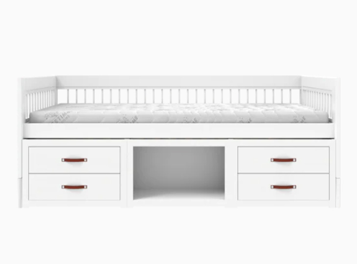 Met trots presenteren wij onze nieuwste collectie Breeze bestaat uit een open ontwerp met spijlen aan zowel de achterkant als de zijkanten van het bed, waardoor een lichtere en speelsere uitstraling ontstaat die ideaal is voor elke kinderkamer. De lichte en eenvoudige uitstraling zorgt voor een tijdloos ontwerp dat jarenlang kan worden gebruikt, ongeacht de leeftijd van uw kind. Zo kan het bed de ontwikkeling van jouw kindje jarenlang volgen! Het Kajuitbed is voorzien van 2 lades en een lage plank, waardoor een stijlvolle uitstraling wordt gecombineerd met praktische opbergmogelijkheden. Pas het uiterlijk van uw handgrepen aan zodat ze perfect bij uw huis passen. Bovendien zijn de laden voorzien van soft-close-technologie, waardoor kinderen veilig worden beschermd tegen mogelijk vingerletsel.