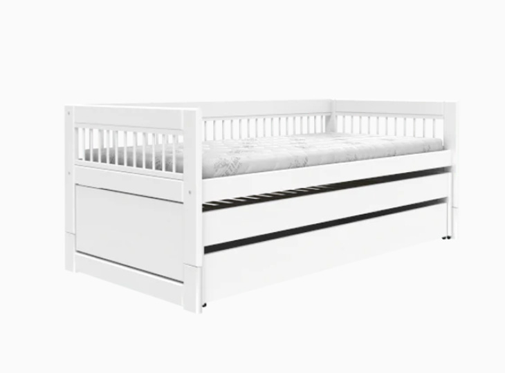 Met trots presenteren wij onze nieuwste collectie Breeze. Dezelfde functionaliteit in nieuwe kleding.. Breeze bestaat uit een open ontwerp met spijlen aan zowel de achterkant als de zijkanten van het bed, waardoor een lichtere en speelsere uitstraling ontstaat die ideaal is voor elke kinderkamer. De lichte en eenvoudige uitstraling zorgt voor een tijdloos ontwerp dat jarenlang kan worden gebruikt, ongeacht de leeftijd van uw kind. Zo kan het bed de ontwikkeling van jouw kindje jarenlang volgen! Eén van de kwaliteiten van het bed is dat het, zoals de naam al doet vermoeden, multifunctioneel is. Bed, logeerbed en opbergruimte gecombineerd in één meubelstuk dat in de kinderkamer zeer weinig ruimte in beslag neemt. Op het eerste gezicht heb je niet door dat het bed multifunctioneel is. Pas als het logeerbed wordt uitgetrokken, besef je het ongelooflijke functionaliteit van het bed. Het is niet meer nodig om de vloer op te ruimen met matrassen als uw kind logees in huis heeft. Met het meerpersoonsbed is het logeerbed altijd binnen handbereik.