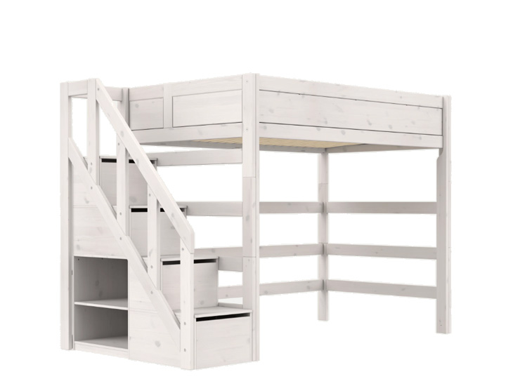 Lifetime Original Hoogslaper met trapkast - whitewash 177 hoog in de maat 120x200.