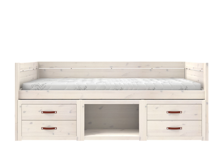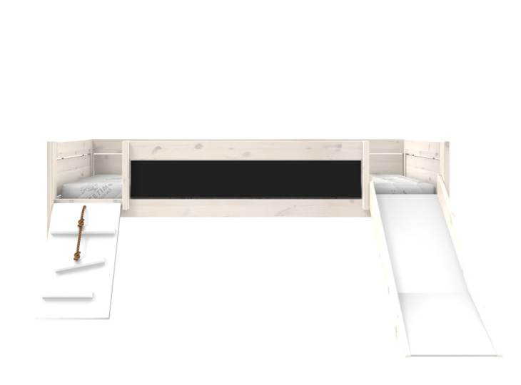 Soms heb je gewoon een kamer nodig voor alles. Het perfecte bed voor spelen, opbergen, logeerpartijtjes en gezellige momenten. Wanneer je kind wat ouder is en meer opbergruimte nodig heeft of slaapfeestjes met vriendjes of vriendinnetjes wil houden, heeft dit 120x200 kajuitbed een fijne hoogte. Voor dit bed zijn verschillende extra opties beschikbaar: