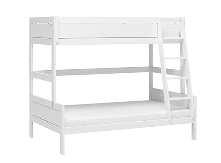 Het Lifetime familie stapelbed 90/120 wit is een prachtige manier om een kamer te delen. 2 onderin en 1 kind erboven. Natuurlijk kunnen er ook twee kids in slapen. Het bovenste bed heeft een matras van 90x200 en de onderste 120x200. Standaard krijg je bij dit twee luxe lattenbodems. De ladder is zowel links als rechts te plaatsen. Ditzelfde bed is ook beschikbaar met een onderbed van 140 breed of met een trapkast voor extra opbergruimte.