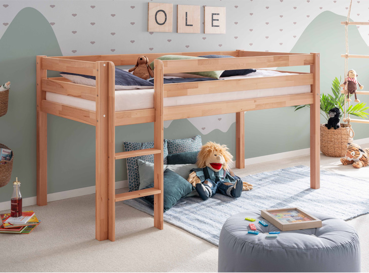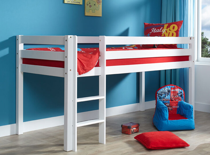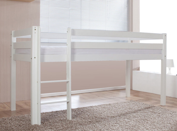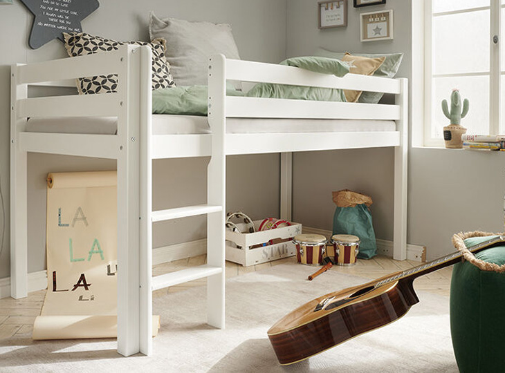 De Pinokkio halfhoogslaper is uitgevoerd in massief wit gelakt beuken. Blijvend wit, verkleurt nauwelijks en heeft geen noesten die zichtbaar kunnen worden.