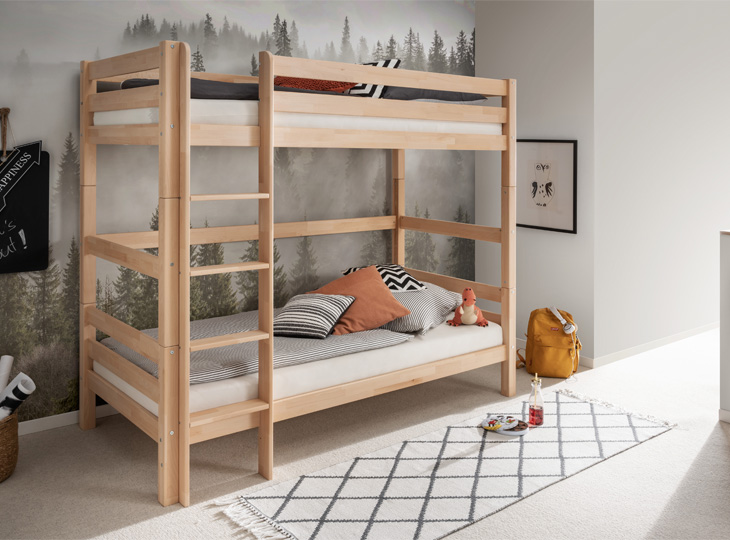 Zeer solide stapelbed Pinokkio gemaakt van massief beuken. Dit stapelbed is een veilige slaapplek voor 2 kinderen. De ladder kan zowel links- als rechts van het stapelbed worden gemonteerd, en dit is altijd weer te veranderen. De gebruikte beitsen en lakken zijn op waterbasis, milieuvriendelijk en kindveilig. Dit stapelbed is getest volgens de EU/EN norm en als zeer veilig beoordeeld. Na gebruik als stapelbed kan dit model weer worden omgebouwd tot twee 1-persoons kinderbedden. Wordt geleverd excllusief 2 lattenbodems!