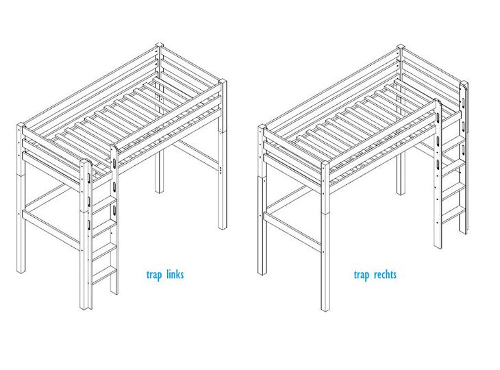 De ladder kan zowel links- als rechts worden gemonteerd en kan eventueel nog veranderd worden. In de zijden van de ladder zijn voor meer veiligheid handgrepen geïntegreerd. Na gebruik als hoogslaper kan dit model weer worden omgebouwd tot een 1-persoons bed.
