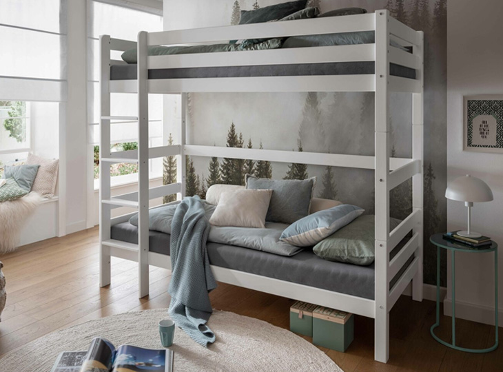 Zeer solide stapelbed Pinokkio gemaakt van massief beuken in het wit afgelakt. Deze lak zal niet verkleuren. Dit stapelbed is een veilige slaapplek voor 2 kinderen. De ladder kan zowel links- als rechts van het stapelbed worden gemonteerd, en dit is altijd weer te veranderen. De gebruikte beitsen en lakken zijn allen op waterbasis, milieuvriendelijk en kindveilig. Dit stapelbed is getest volgens de EU/EN norm en als zeer veilig beoordeeld. Na gebruik als stapelbed kan dit model weer worden omgebouwd tot twee 1-persoons kinderbedden. Exclusief lattenbodems.