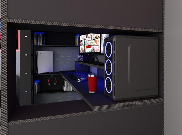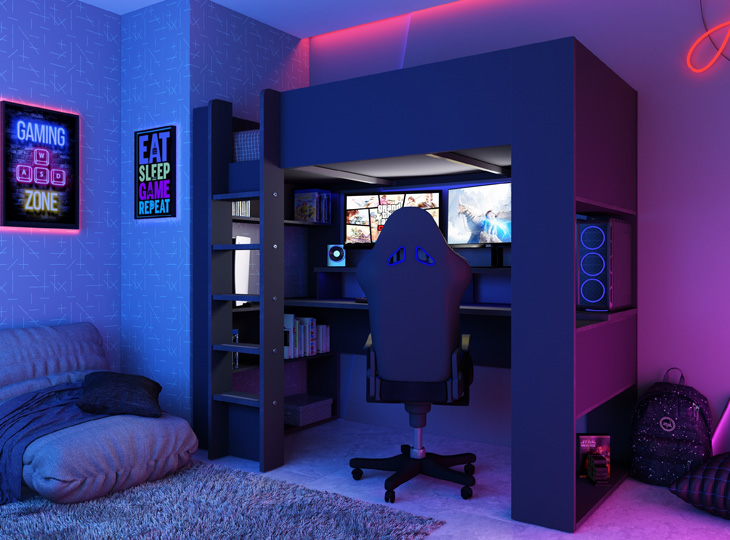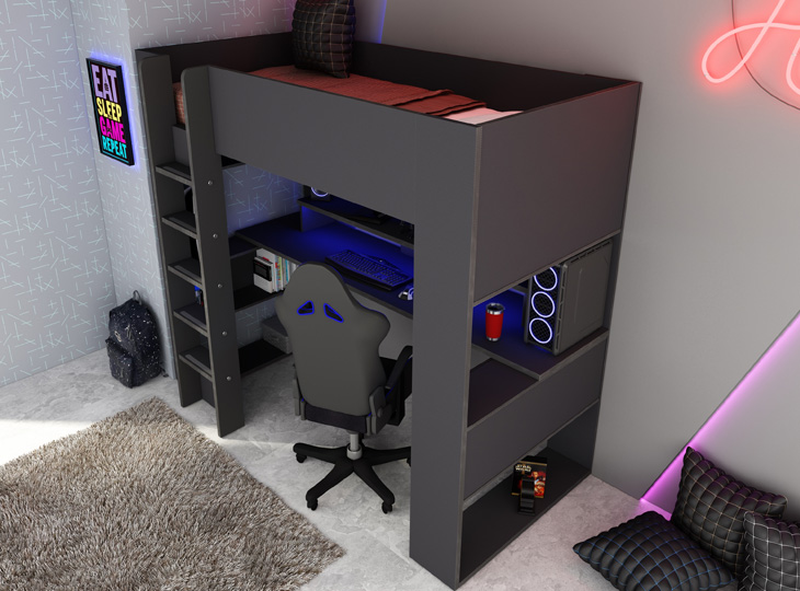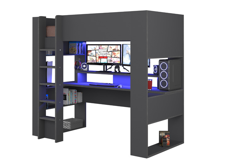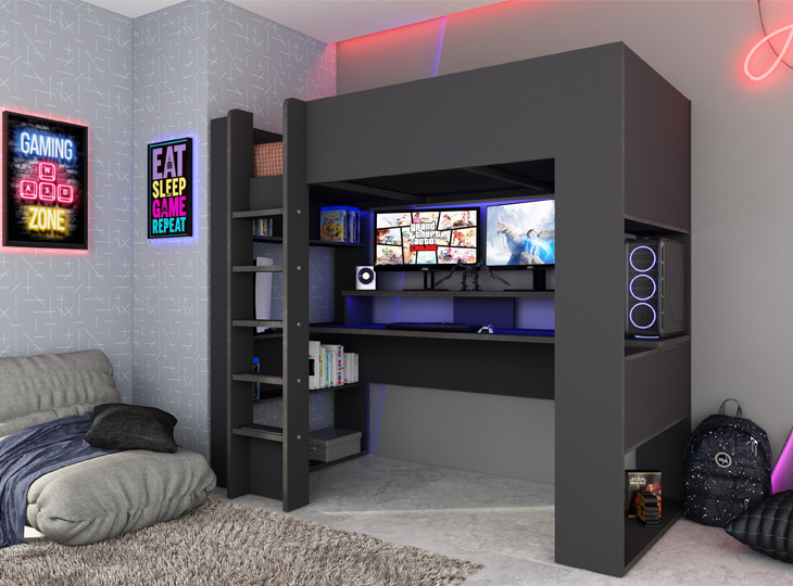 Iedere fanatieke gamer wil toch slapen en gamen in deze spectaculaire hoogslaper met bureau?