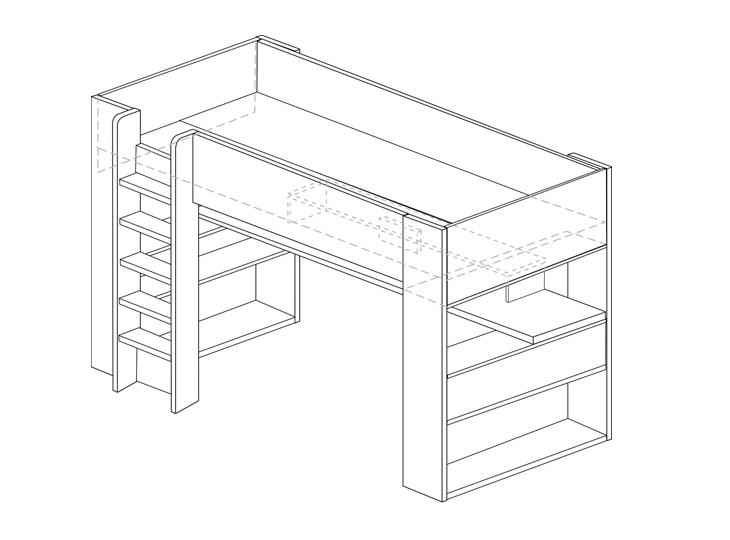 - Graag willen we je erop attenderen dat de montage uitsluitend mogelijk is zoals op de foto staat afgebeeld. Het bed kan dus niet gespiegeld opgebouwd worden.