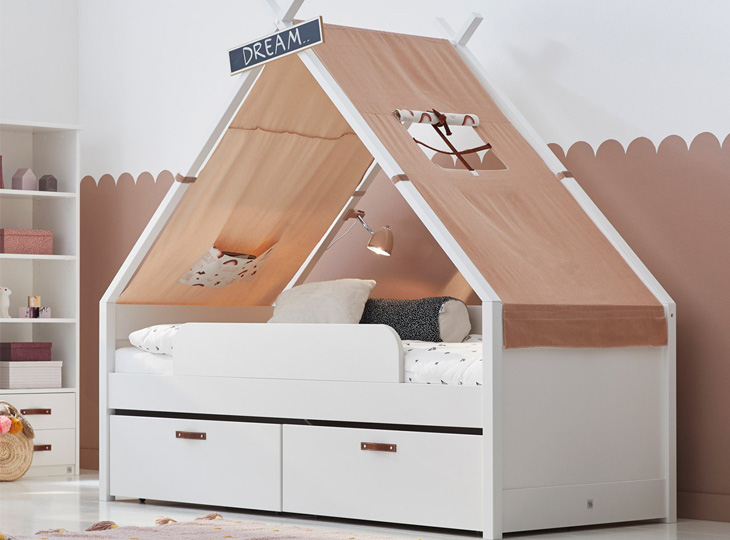 De tipi tent kan na verloop van tijd gedemonteerd worden. Hierdoor is het bed uitstekend geschikt voor de gehele jeugd van uw kind.