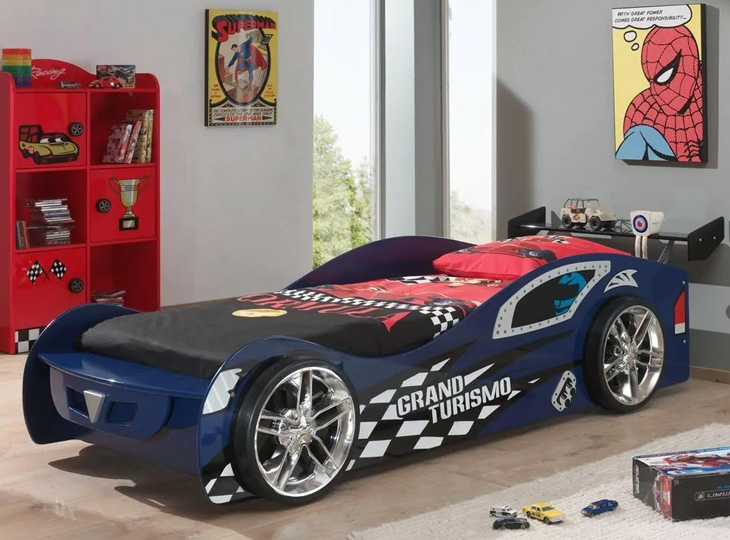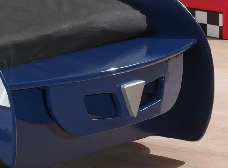 Wat een stoer autobed is dit! Het strakke ontwerp van dit prachtige Grand Turismo bed gemaakt uit dat afgewerkt is met een diepblauwe lak, brengt de opwinding van het circuit naar de slaapkamer. Dit bed is ontworpen voor een comfortabele en ondersteunende nachtrust en is geschikt voor een matras van 90x200 cm. De glanzende afwerking en het opvallende raceauto-ontwerp maken van Grand turismo een comfortabele slaapplaats.