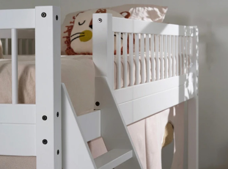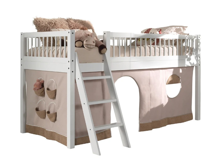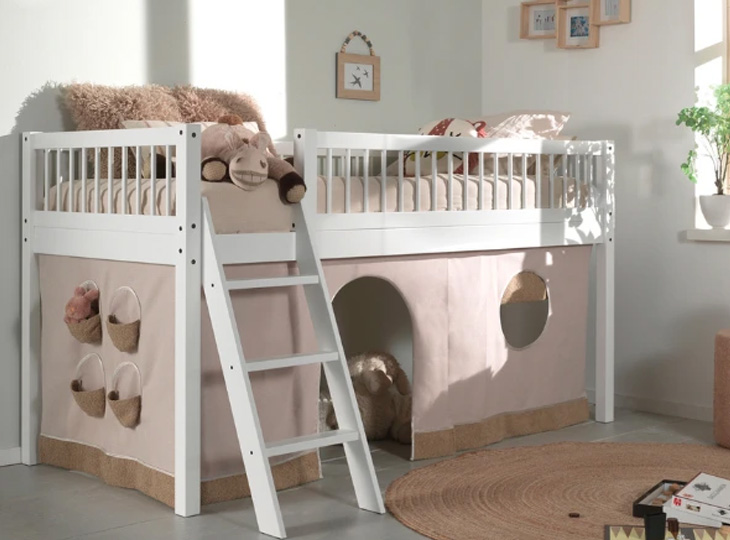 De Forrest halfhoogslaper 90x200cm met bedtent optioneel €159 is een stijlvolle en ruimtebesparende oplossing voor elke slaapkamer. Gemaakt van hoogwaardig beukenhout, straalt deze halfhoogslaper kwaliteit en elegantie uit in elk detail. De ruimte onder het bed kan niet enkel gebruikt worden als handige opbergruimte, maar kan ook ingericht worden als leuk speelhoekje. Zo wordt de kinderkamer een waar speelparadijs.