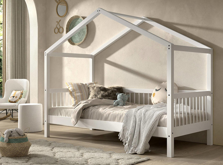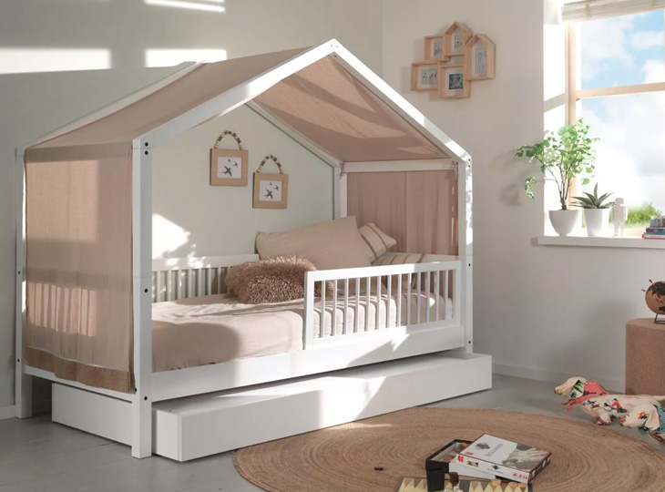 Forrest bedhuis is het perfecte droombed voor elk kind. Dit stijlvolle massief beuken bed in het wit ,heeft een speels huisvormig ontwerp en creëert een veilige en gezellige slaapomgeving. Het bed wordt geleverd met een stevige lattenbodem, wat zorgt voor optimale ondersteuning en een comfortabele slaapervaring. Dit bed combineert moeiteloos functionaliteit met plezier en is een prachtige aanwinst voor elke kinderkamer. Belgisch design op zijn mooist, met een strakke look die nooit uit de mode raakt. Het dakframe is eventueel aan te kleden met een bedtent!