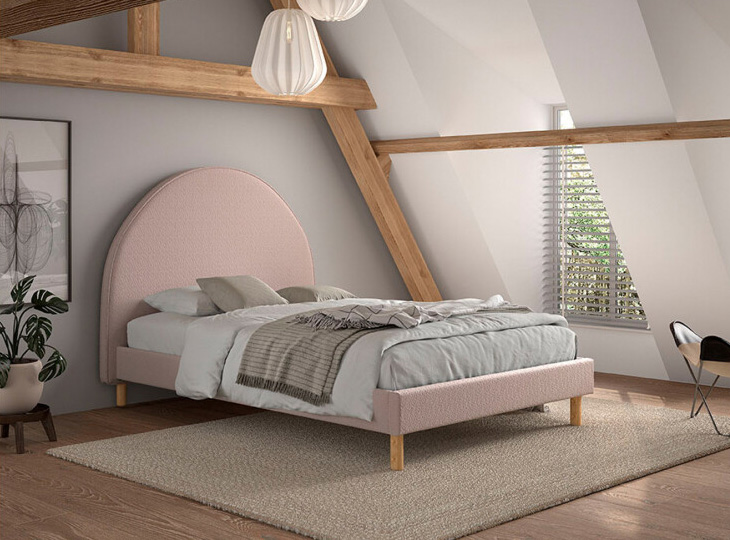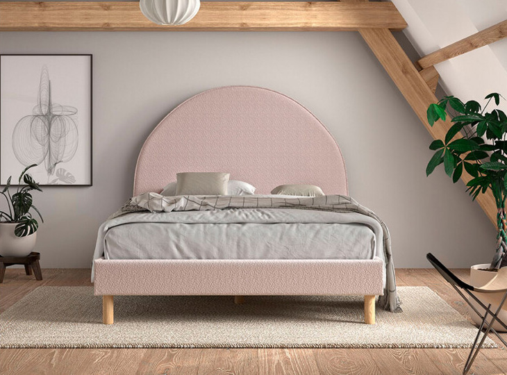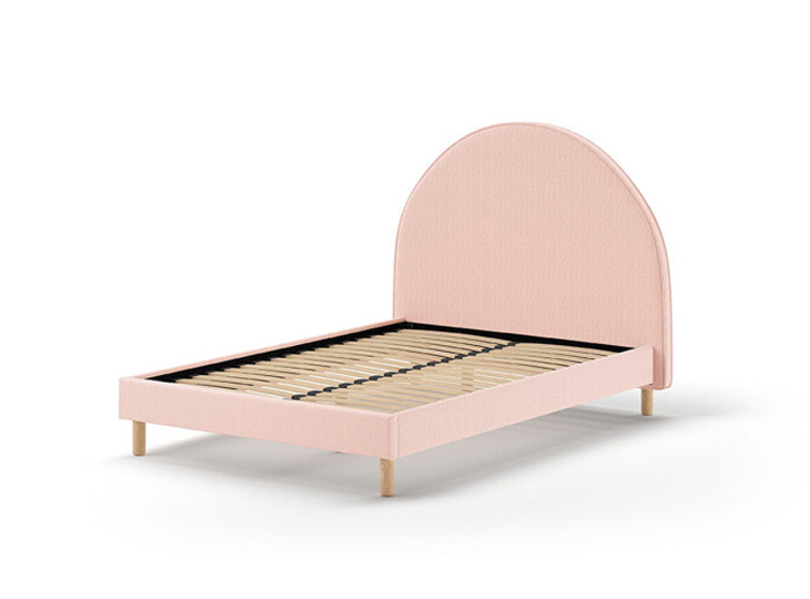 Dit luxe gestoffeerde bed is voorzien van een prachtige zachte bouclé stof in het roze en heeft een stijlvol maanvormig hoofdbord dat een perfecte aanvulling geeft in elk interieur. Met veiligheid in gedachten, is dit bed vervaardigd met houten poten om maximale stabiliteit te garanderen voor de perfecte nachtrust.