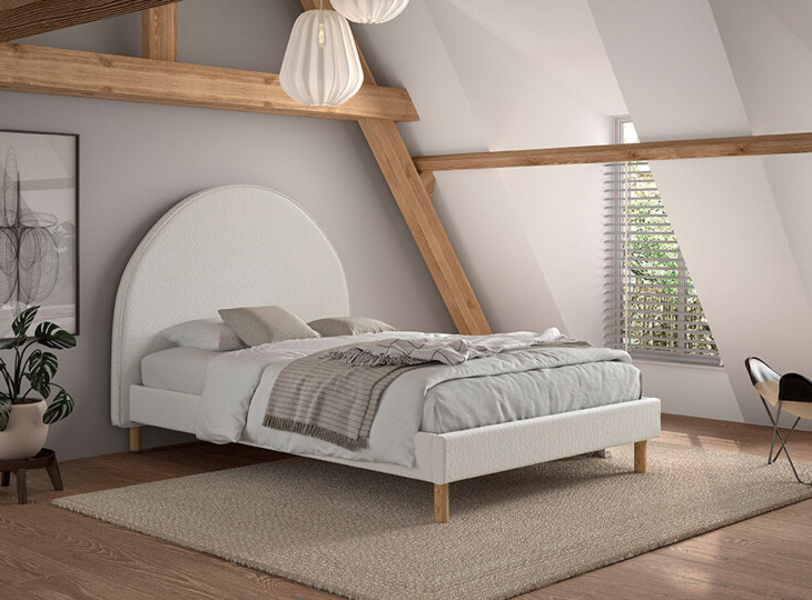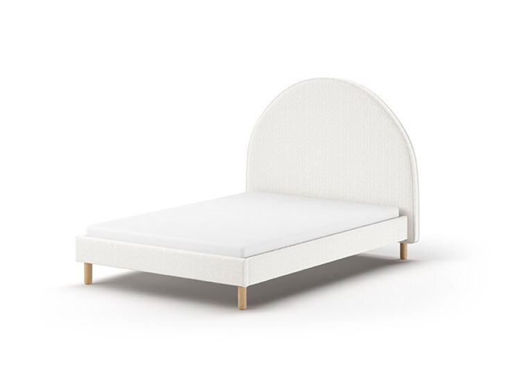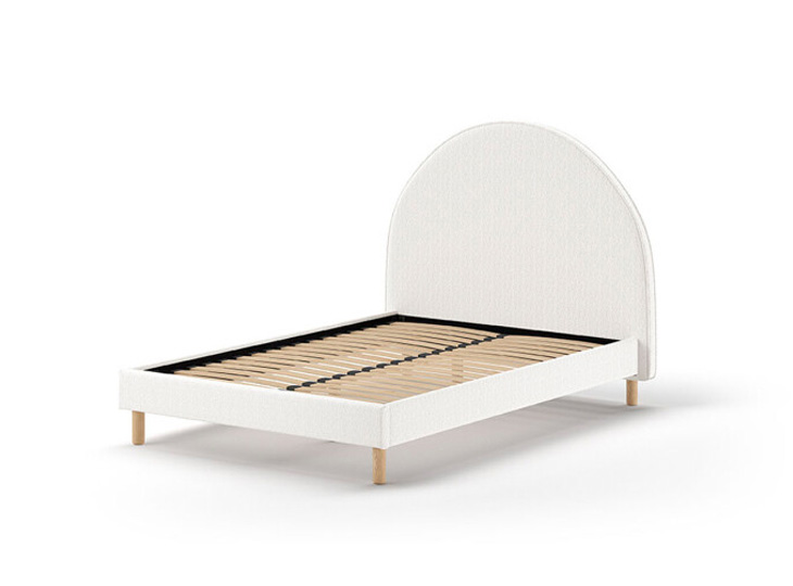 Dit luxe gestoffeerde bed is voorzien van een prachtige zachte bouclé stof in het wit en heeft een stijlvol maanvormig hoofdbord dat een perfecte aanvulling geeft in elk interieur. Met veiligheid in gedachten, is dit bed vervaardigd met houten poten om maximale stabiliteit te garanderen voor de perfecte nachtrust.