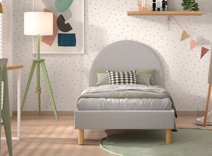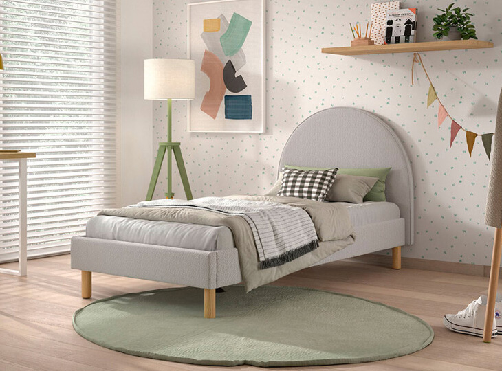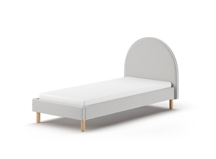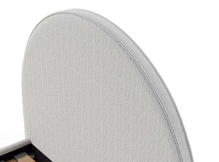 Bestel de leuke Moon poef met grijze bouclé stof bij dit bed! Dit is  niet alleen handig om naast uw bed te zetten, maar kan ook elders in de slaapkamer als poef, bijzettafeltje of voetenbankje worden gebruikt.