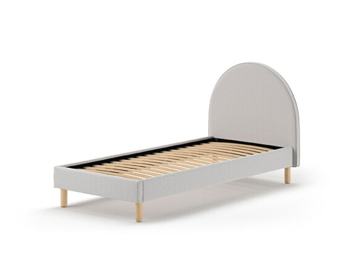 Dit luxe gestoffeerde bed is voorzien van een prachtige zachte bouclé stof in het grijs en heeft een stijlvol maanvormig hoofdbord dat een perfecte aanvulling geeft in elk interieur. Met veiligheid in gedachten, is dit bed vervaardigd met houten poten om maximale stabiliteit te garanderen voor de perfecte nachtrust.