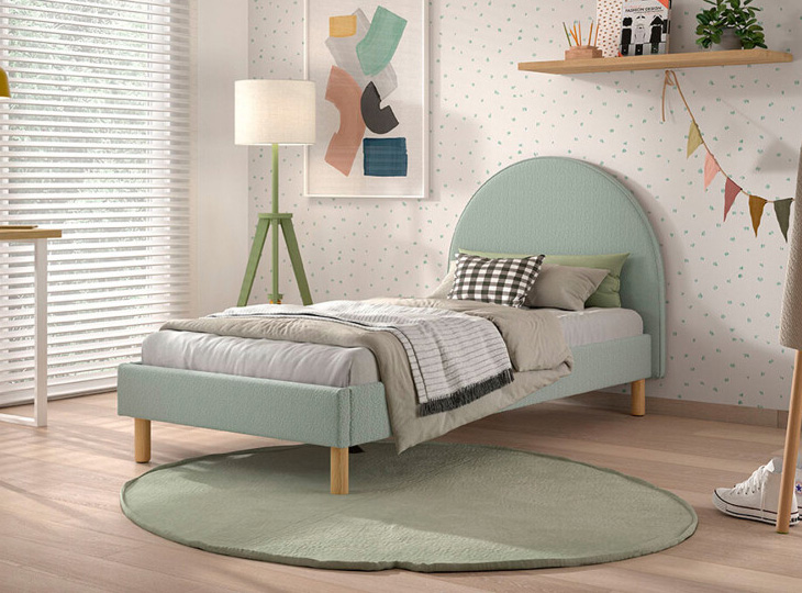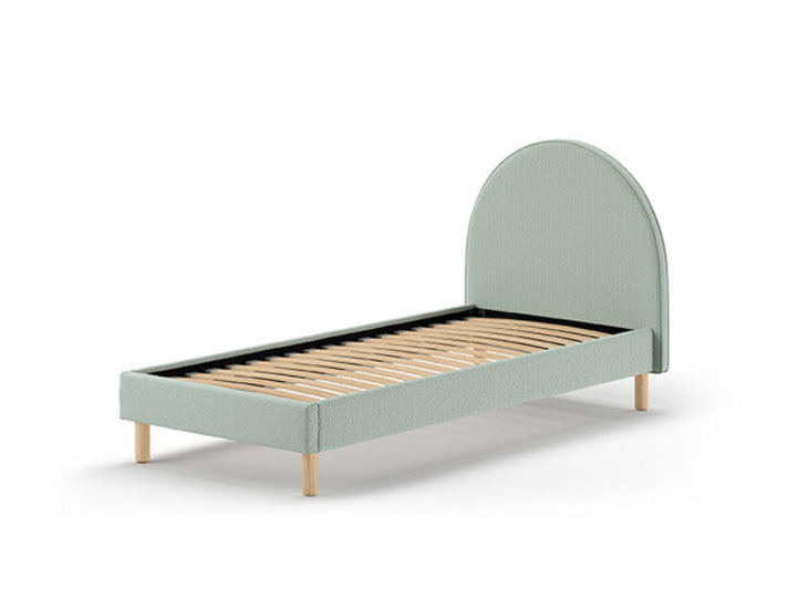 Dit luxe gestoffeerde bed is voorzien van een prachtige zachte bouclé stof in het groen en heeft een stijlvol maanvormig hoofdbord dat een perfecte aanvulling geeft in elk interieur. Met veiligheid in gedachten, is dit bed vervaardigd met houten poten om maximale stabiliteit te garanderen voor de perfecte nachtrust.