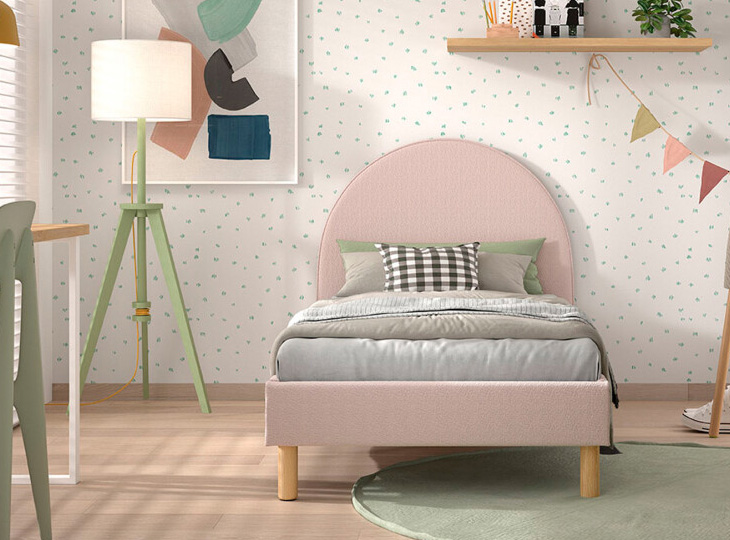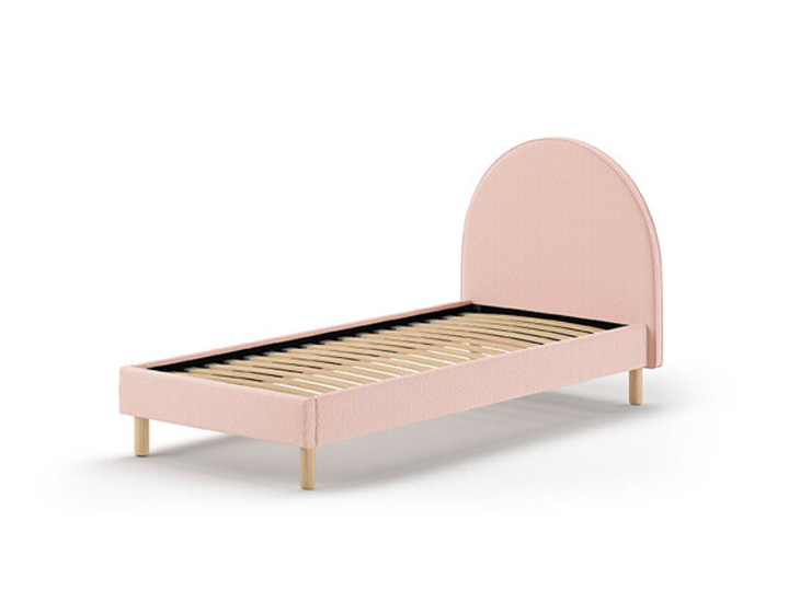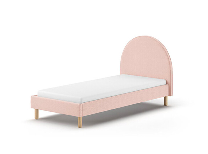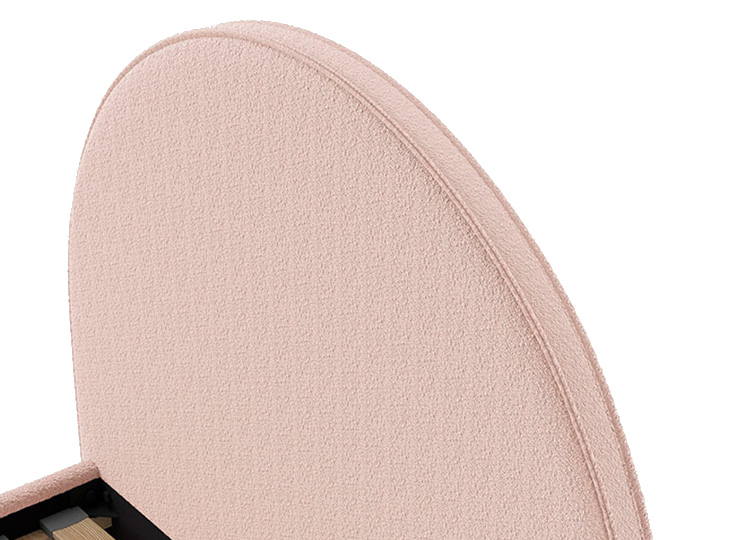 Dit luxe gestoffeerde bed is voorzien van een prachtige zachte bouclé stof in het roze en heeft een stijlvol maanvormig hoofdbord dat een perfecte aanvulling geeft in elk interieur. Met veiligheid in gedachten, is dit bed vervaardigd met houten poten om maximale stabiliteit te garanderen voor de perfecte nachtrust.