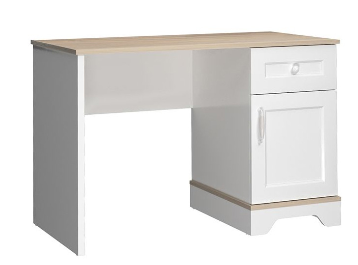 Dit prachtige Bianca bureau is een waardevolle aanvulling voor jouw slaapkamer! Het bureau met opzet is ontworpen in een prachtige landelijke en sierlijke stijl. Hierdoor past het bureau perfect bij de andere meubels uit de Bianca serie, maar dankzij de neutrale witte kleur is het bureau ook gemakkelijk te combineren met andere meubels! Het bureaublad biedt een ideale plek om te studeren, schrijven, en meer. Bovendien is er voldoende opbergruimte beschikbaar dankzij de lade en de twee opbergvakken achter het deurtje. Het bureau is vervaardigd uit hoogwaardig kwaliteitsspaanplaat, wat niet alleen zorgt voor een prachtig uiterlijk maar ook voor duurzaamheid en stevigheid.