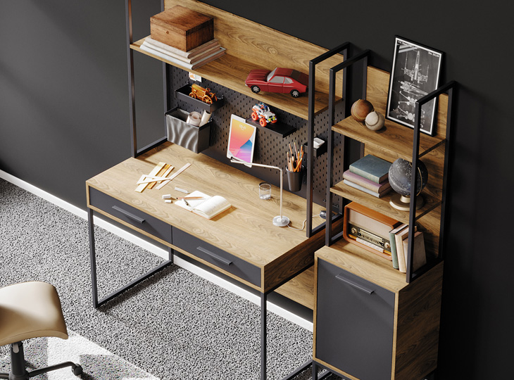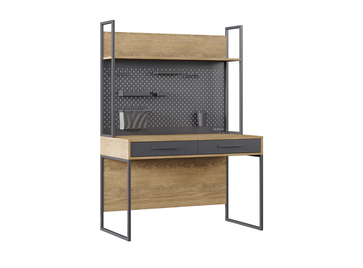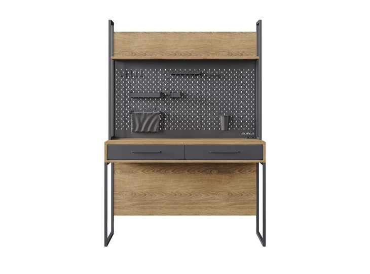 Upgrade je werkplek naar een compleet nieuw niveau met het New Legend Bureau inclusief opzet. Dit bureau is vervaardigd van melamine houtvezelplaat met een afwerking in de kleuren grijs en walnoot, en het resultaat is werkelijk gaaf. De uitgebreide opzet biedt een ideale werkruimte waar je jezelf direct ziet zitten. Met twee soft close lades en een handige USB aansluiting kun je al je devices moeiteloos opladen. De opzet wordt geleverd inclusief alle accessoires die je op de afbeelding ziet. Plaats ze naar eigen wens op de wand dankzij de handige decoratieve uitsparingen. Het antraciet metalen frame voegt een stoere industriële uitstraling toe. Dit schitterende en kwalitatieve model past perfect in elke kinderkamer of tienerkamer.