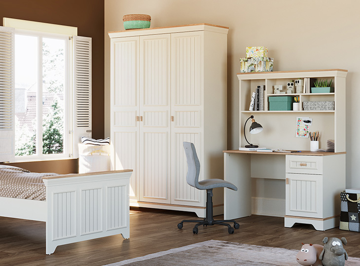 Ben je op zoek naar een landelijke bureau in wit, waar je echt fijn kan studeren en leren? Dan heb ik goed nieuws voor jou! Bureau Monte met opzet voor een prachtig geheel en extra opbergruimte is het ideale bureau om aan te werken. Dit bureau maakt deel uit van de volledige kamer Monte, die perfect past binnen de landelijke woonstijl. Alle meubels van deze collectie zijn gemaakt van off white gelakt MDF met details in naturel hout. Ontdek deze landelijke kinderkamer nu in onze showroom!