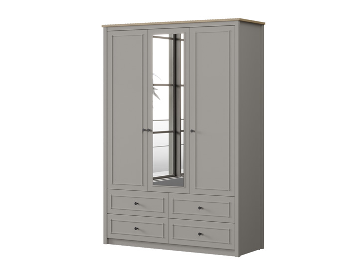 Kinder-/tienerkamer Sento, nu in een 2-delige set! Met een strak tienerbed 120x200 in grijs gecombineerd met blank eikenkleurige details. Een prachtige 3-Deurskast met lades die soepel schuiven op metalen geleiders.  De kast heeft 5 ruime legplanken en een brede hangroede met LED verlichting. Deze kamer is perfect geschikt voor jongens en meisjes.