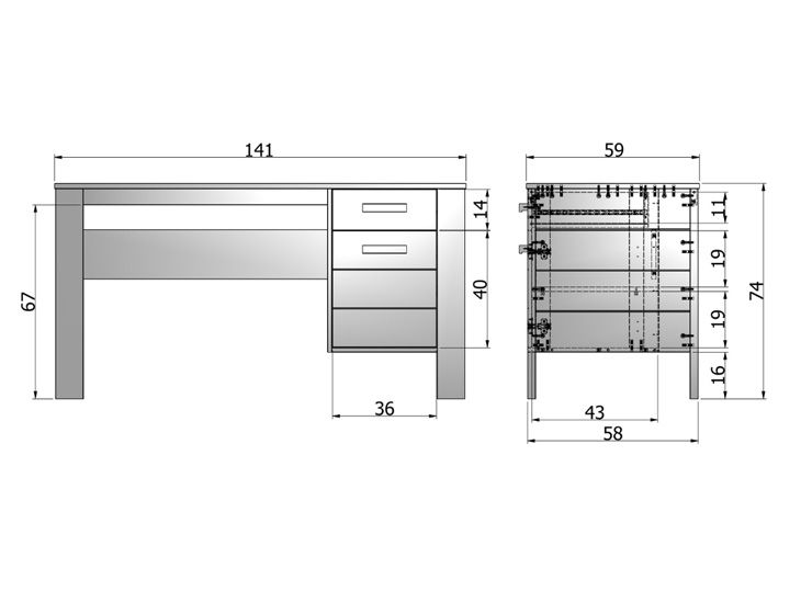 Specificaties Woood | Dennis | Bureau | Betongrijs