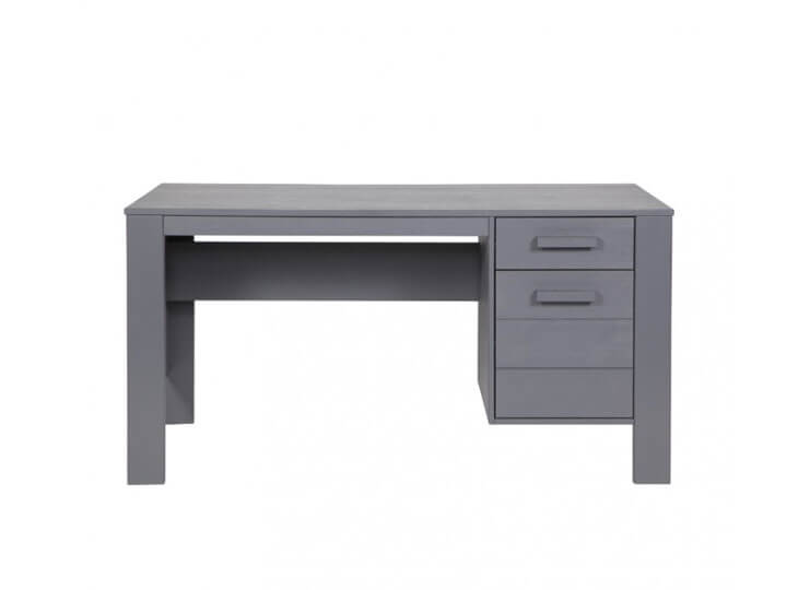 Het bureau  Dennis van Woood is gemaakt van grenen hout en afgelakt in de kleur Steel Grey. Dit bureau heeft 1 lade met een handgreep aan de rechterkant, en een kastje met 1 deur. Gemaakt van geborsteld hout. De nerven en noesten worden door het borstelen geaccentueerd waardoor het hout van de Woood Dennis bureau een doorleefde uitstraling krijgt. Combineer dit bureau met  Kinderkamer Dennis