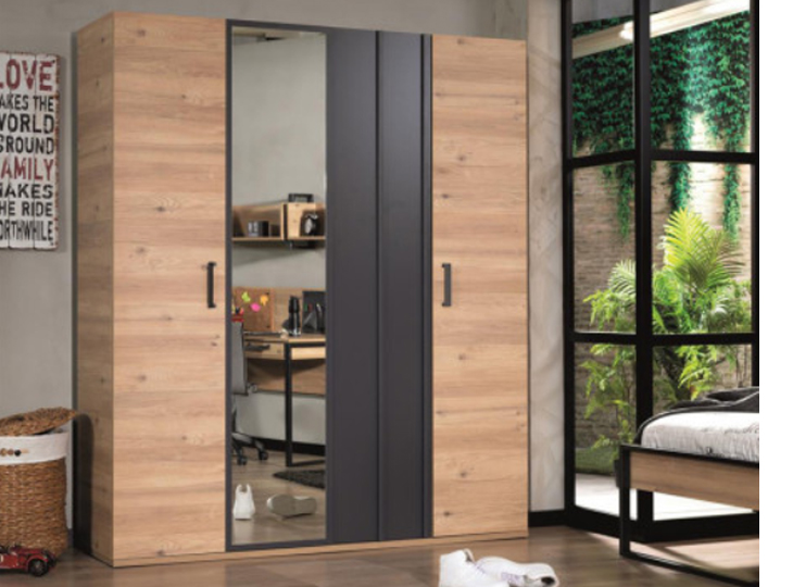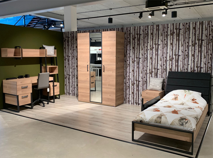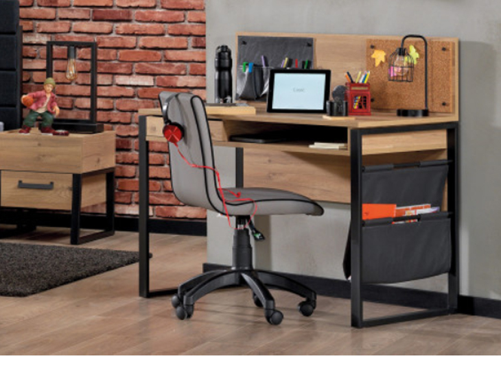 Kinder-/tienerkamer Irony, nu in 4-delige set. Robuuste kamer in een stoere industriële look. Het stoere materiaalgebruik van de Irony en de eigentijdse vormen geven deze kinderkamer een moderne uitstraling.