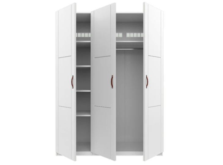 De 3-Deurskast is functioneel en tijdloos design met hangroede, 5 legplanken en ventilatiekanaal aan de achterzijde. Personaliseer deze met een apart verkrijgbare handgreep naar keuze of een kledingroede met ledverlichting. Extra legplanken los verkrijgbaar.